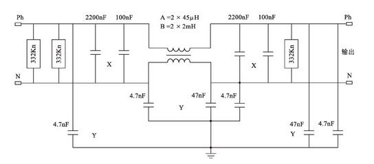 圖3是一個(gè)在實(shí)際的UPS中廣泛應(yīng)用的單相EMC濾波器的典型電路。